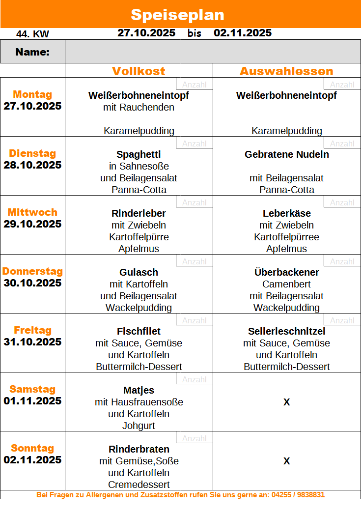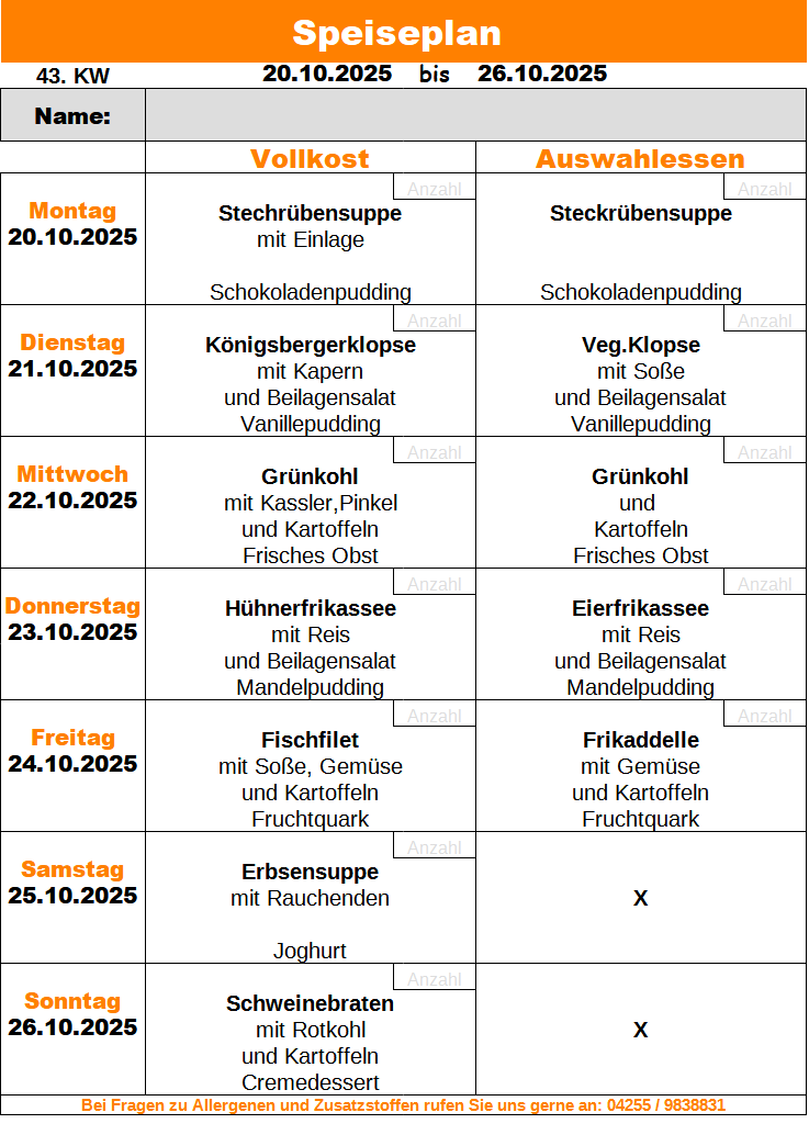 Wir kochen das abwechslungsreiche und schmackhafte Essen für das Seniorenhaus Martfeld sowie für unser Essen auf Rädern, dass in der